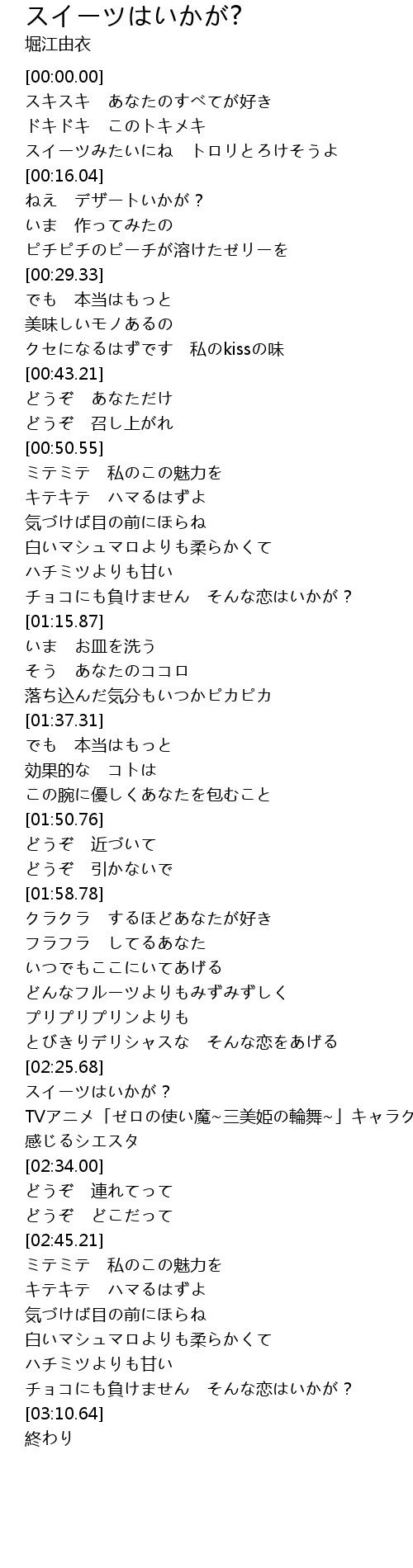 | [03:02.85] | チョコにも負けません そんな恋はいかが? |