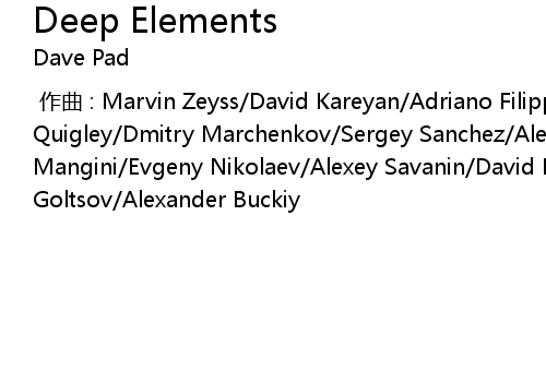 | [00:00.000] | 作曲 : Marvin Zeyss/David Kareyan/Adriano Filippucci/Neil Quigley/Dmitry Marchenkov/Sergey Sanchez/Alexander Malyutin/Francesco Mangini/Evgeny Nikolaev/Alexey Savanin/David Patvakanian/Pavel Losev/Maxim Goltsov/Alexander Buckiy |