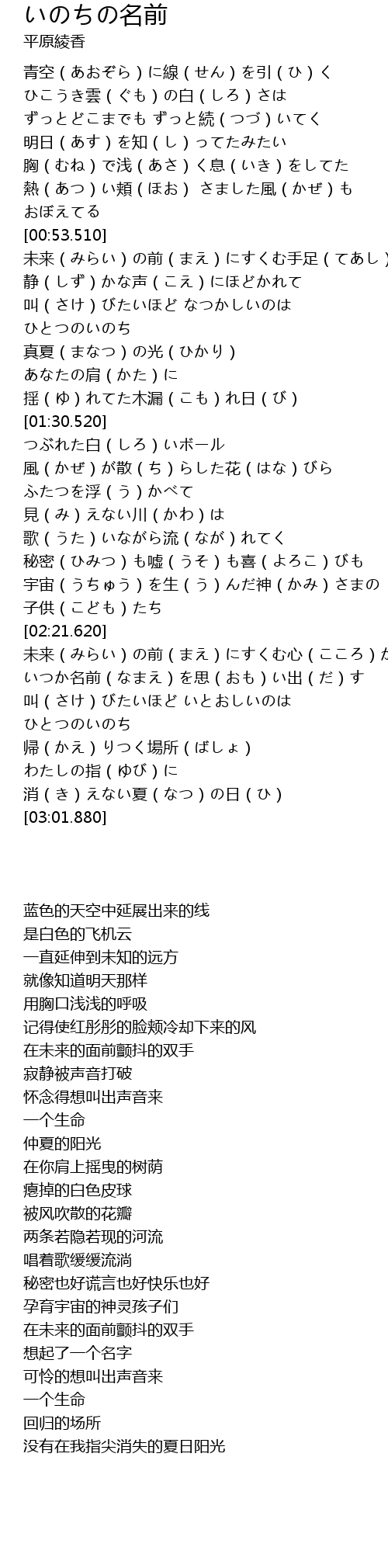 | [02:30.290] | いつか名前(なまえ)を思(おも)い出(だ)す |