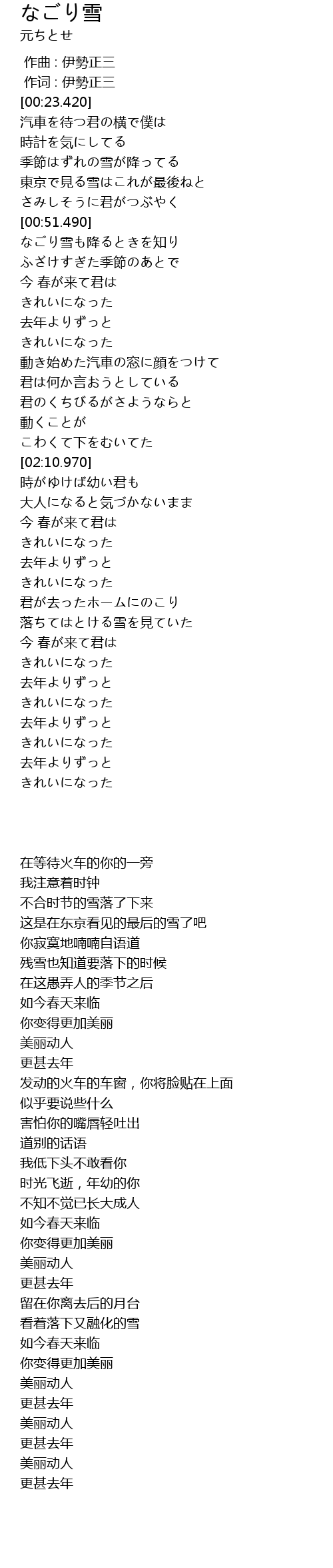 | [03:24.100] | 落ちてはとける雪を見ていた |