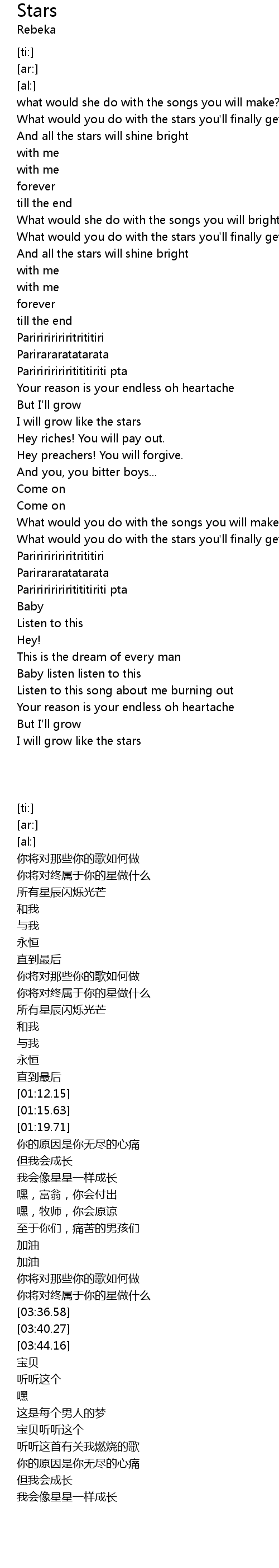 | [02:56.78] | What would you do with the stars you'll finally get to!? |