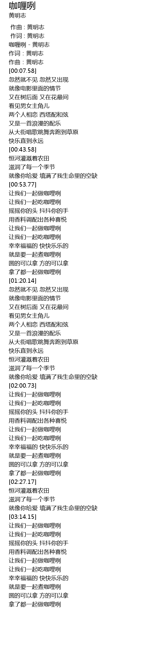 | [00:00.31] | 咖喱咧 - 黄明志 |