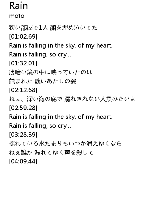 | [03:00.35] | Rain is falling in the sky, of my heart. |