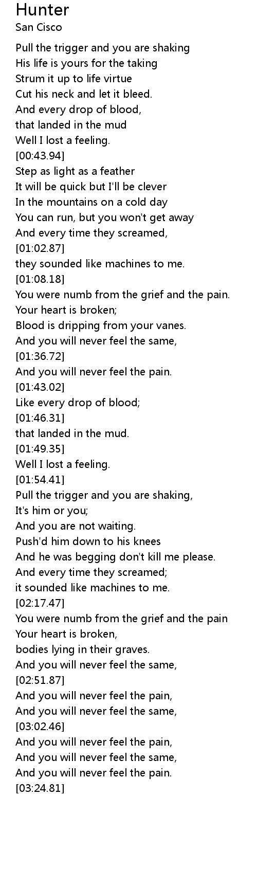 | [01:58.58] | Pull the trigger and you are shaking, |