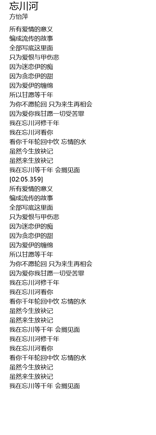 | [01:51.949] | 我在忘川等千年 会搁见面 |