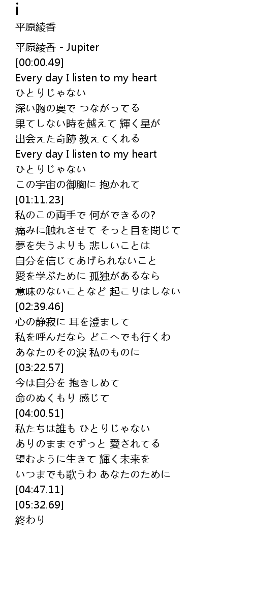 | [00:00.00] | 平原綾香 - Jupiter |