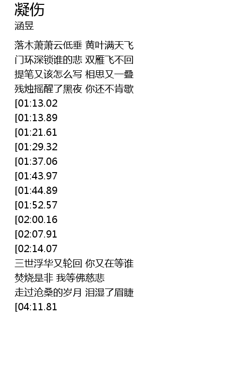| [03:09.89][01:37.06] | 尘缘啄尽了流光 随凡尘湮灭 |