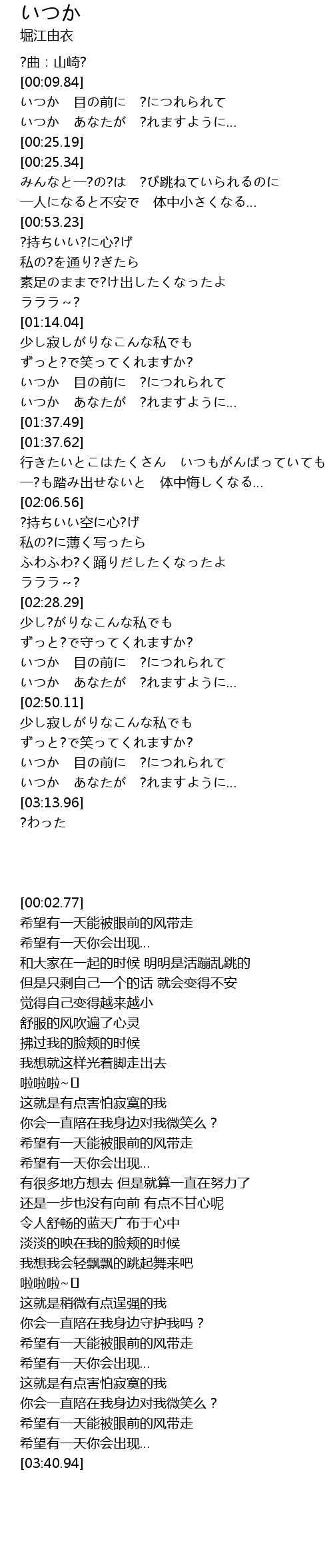| [00:12.06] | いつか 目の前に ?につれられて |