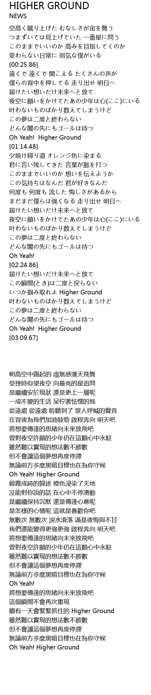 | [01:04.21] | Oh Yeah! Higher Ground |
