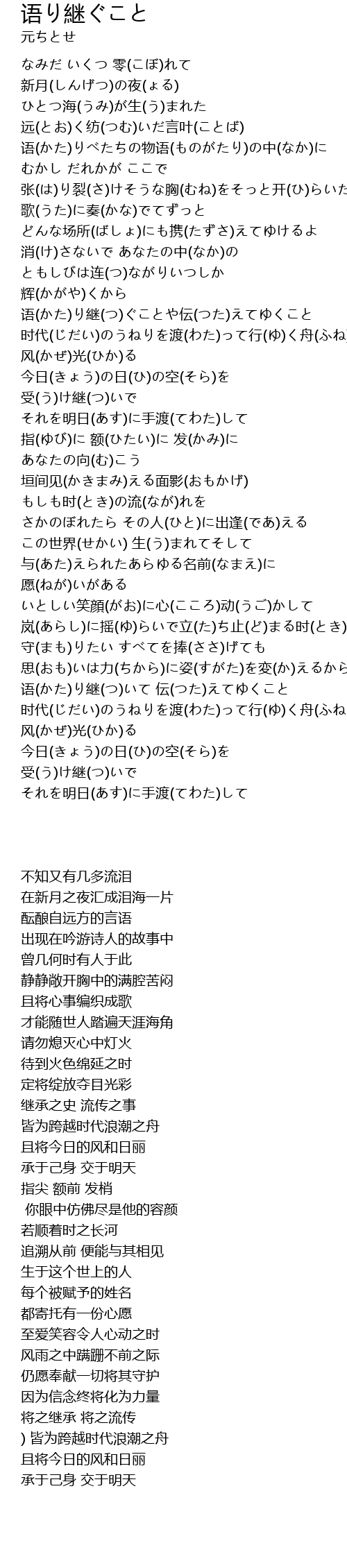 | [01:45.000] | 语(かた)り継(つ)ぐことや伝(つた)えてゆくこと |