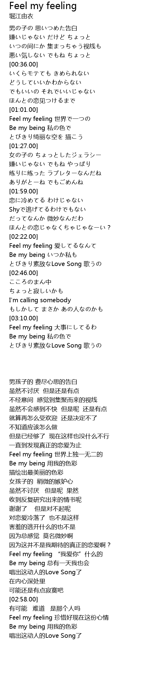 | [02:24.00] | Feel my feeling ài |