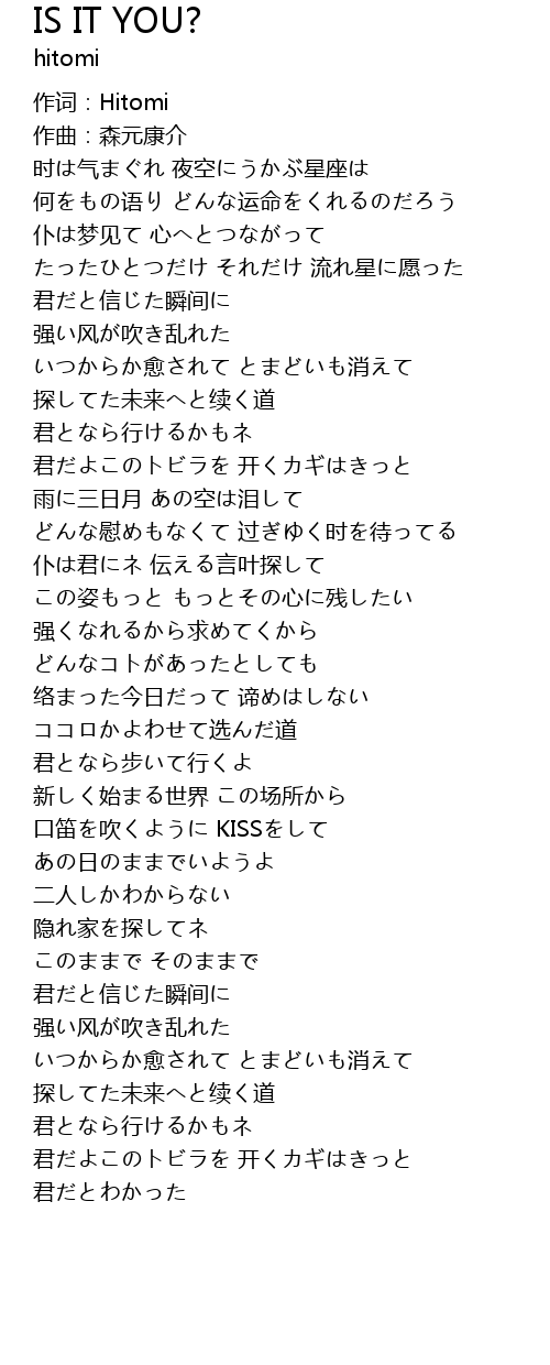 | 作词:Hitomi | |
