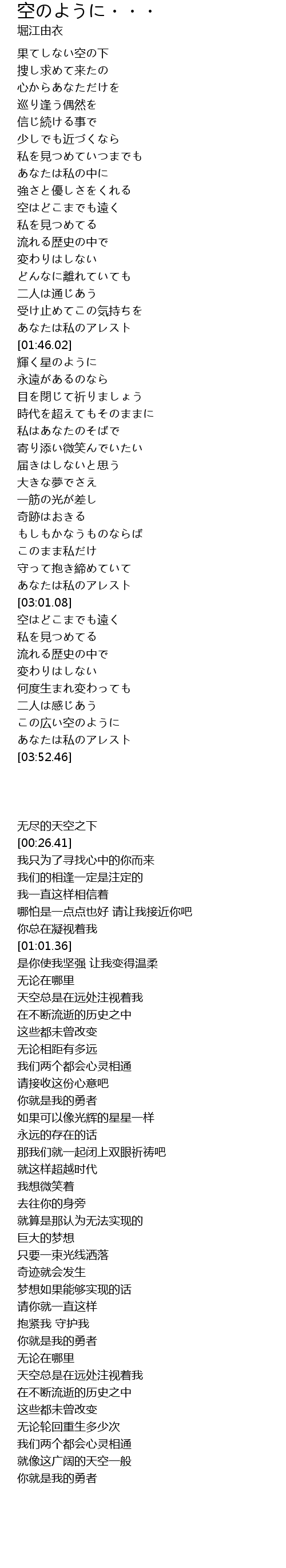 果てしない空の下 |
