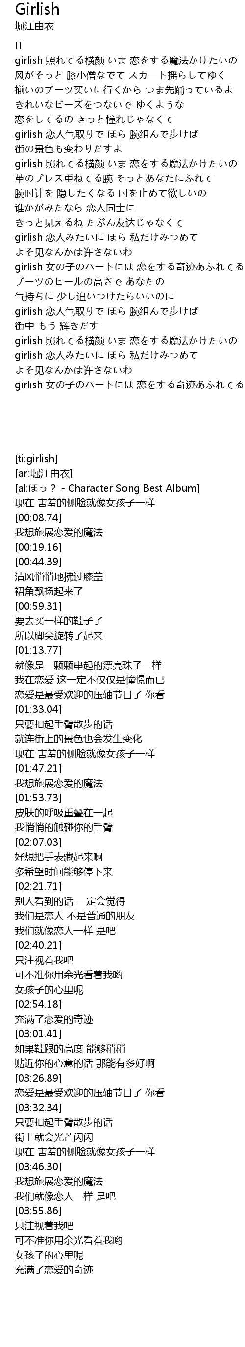 | girlish 恋人气取りで ほら 腕组んで步けば | |
