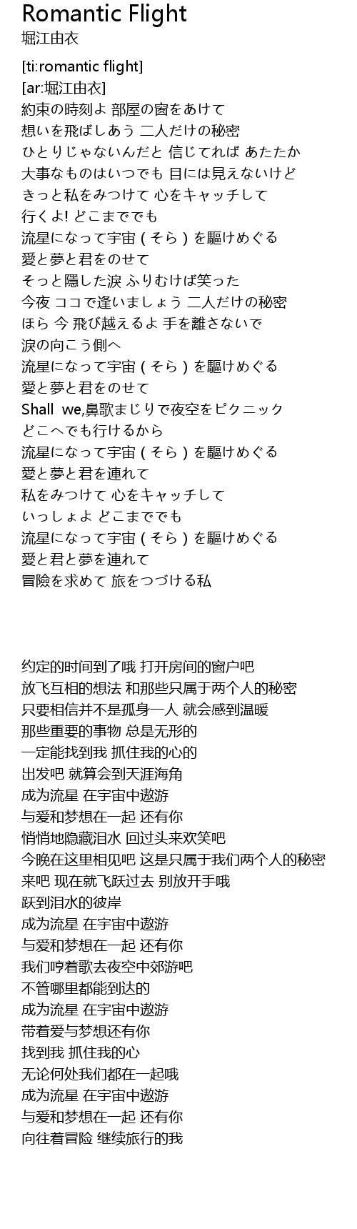 | [02:45.397] | 流星になって宇宙(そら)を驅けめぐる |