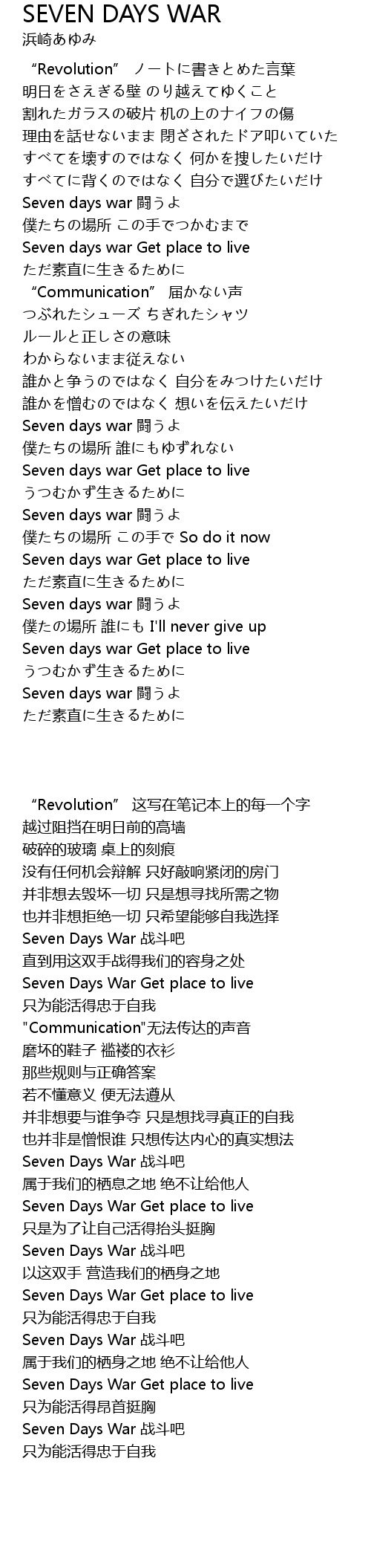 | [03:43.89] | Seven days war 闘うよ |