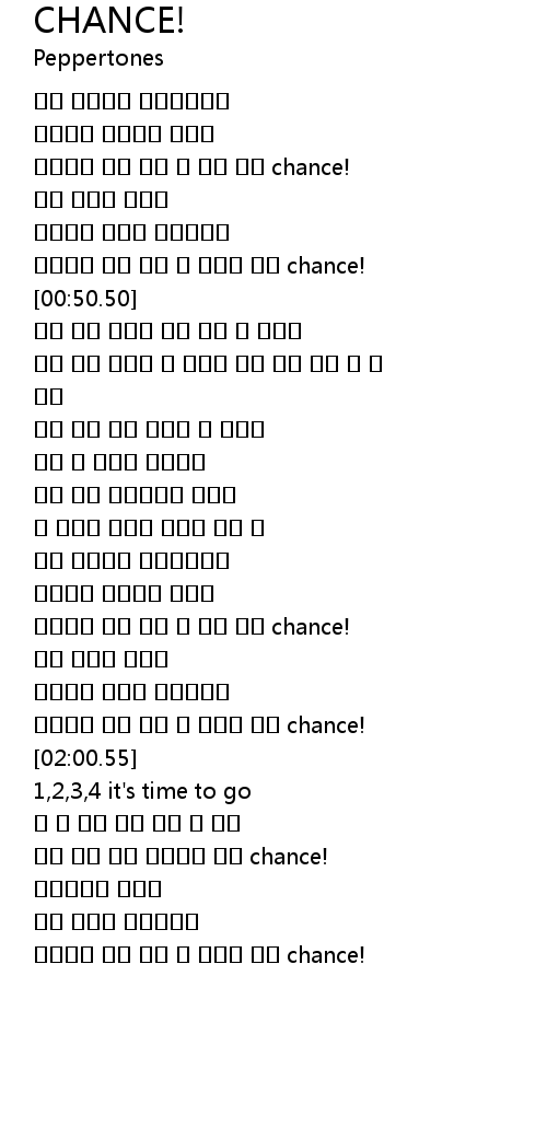 | [02:45.71] | 모든 것을 걸고 승부한다 나의 chance! |