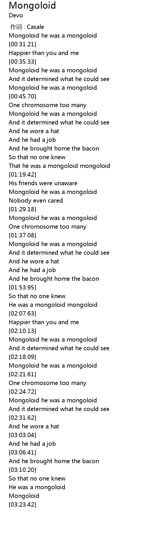 | [00:50.41] | Mongoloid he was a mongoloid |