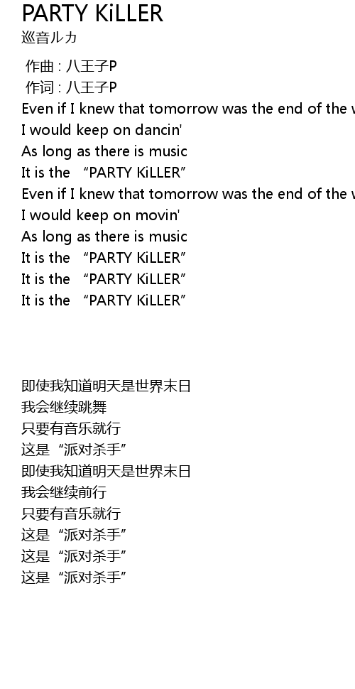| [02:28.50] | It is the " PARTY KiLLER" |