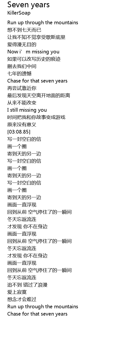 | [02:01.76] | Chase for that seven years |