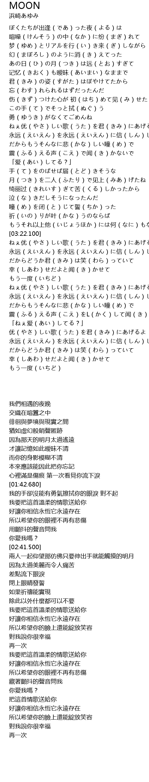| [02:45.990] | 月(つき)を二人(ふたり)で见上(みあ)げたね |