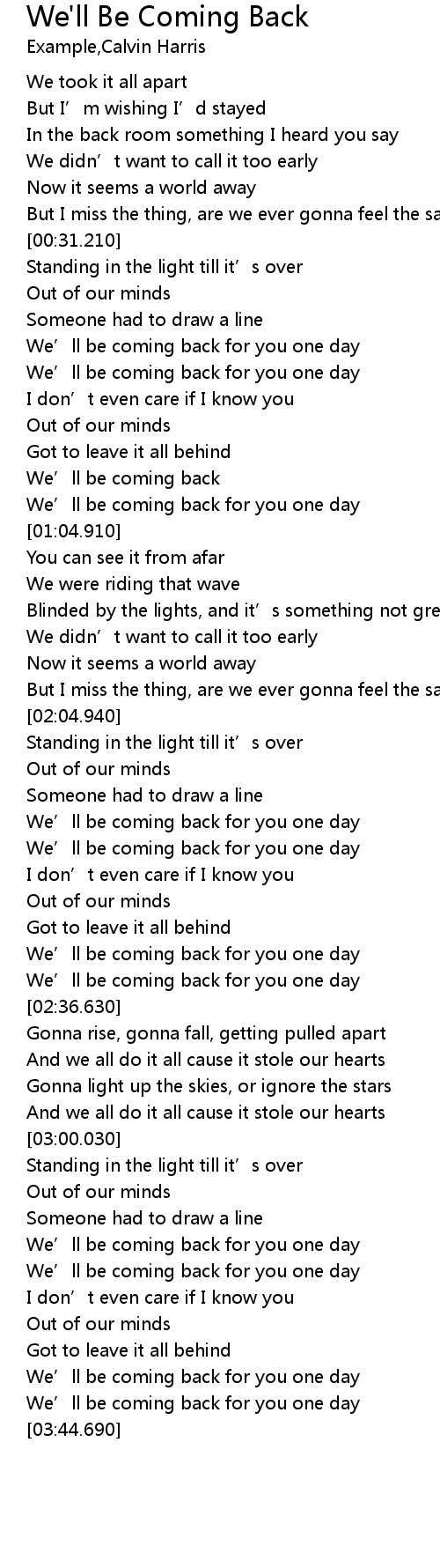 | [00:40.810] | We' ll be coming back for you one day |