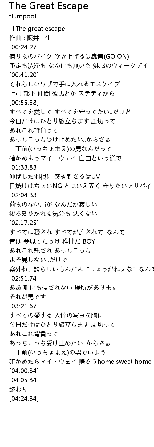 | [03:51.33] | 確かめたらマイ・ウェイ 帰ろうhome sweet home |