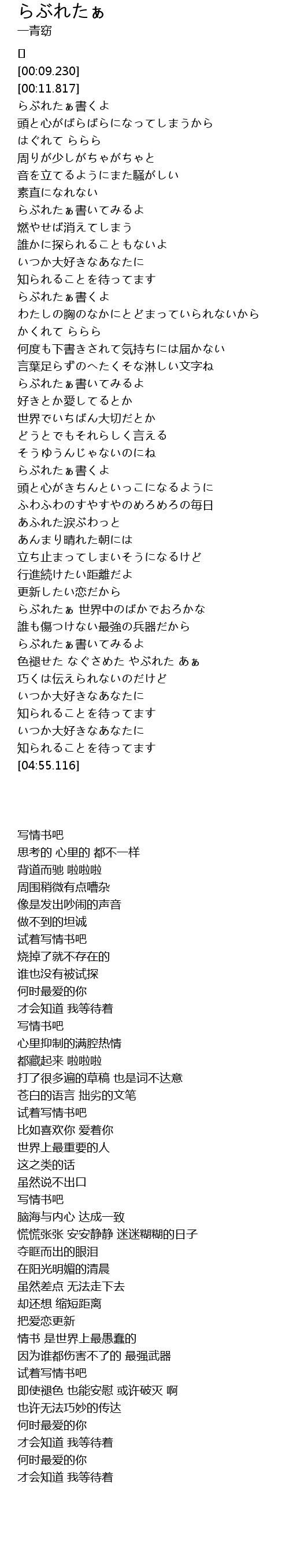 | [01:50.293] | 言葉足らずのへたくそな淋しい文字ね |