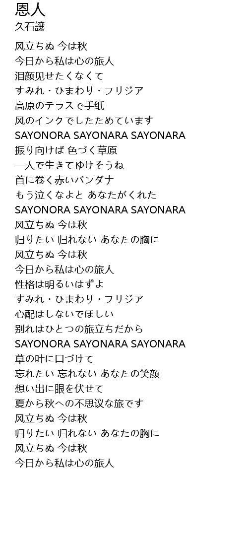 | [03:07.72] | SAYONORA SAYONARA SAYONARA |