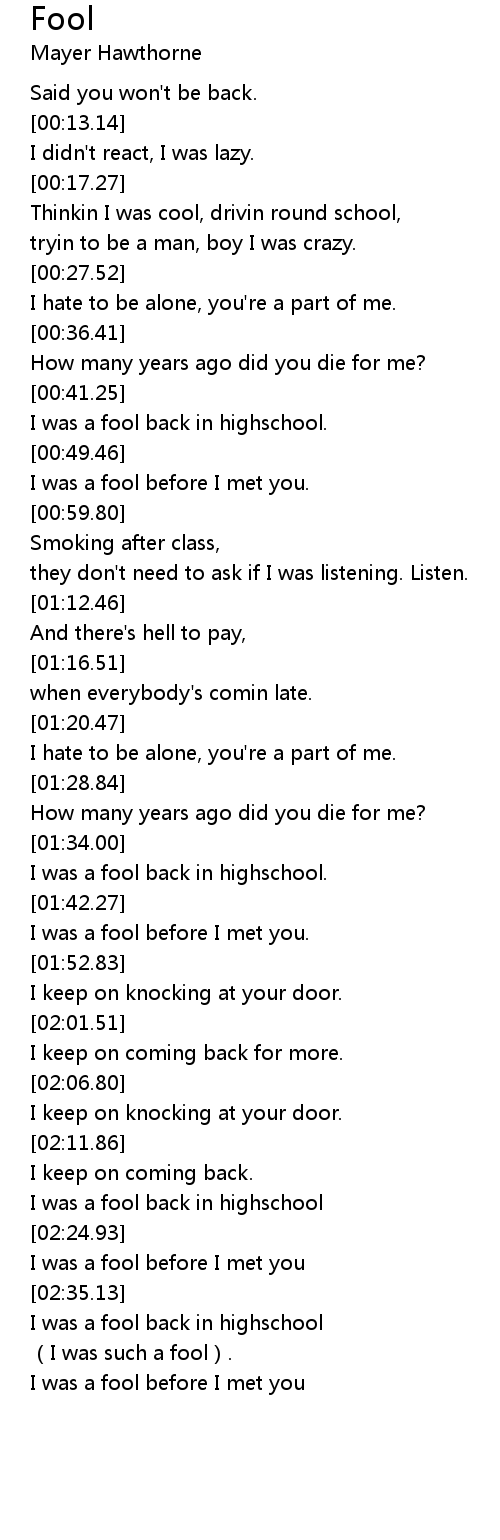 | [00:22.27] | Thinkin I was cool, drivin round school, |