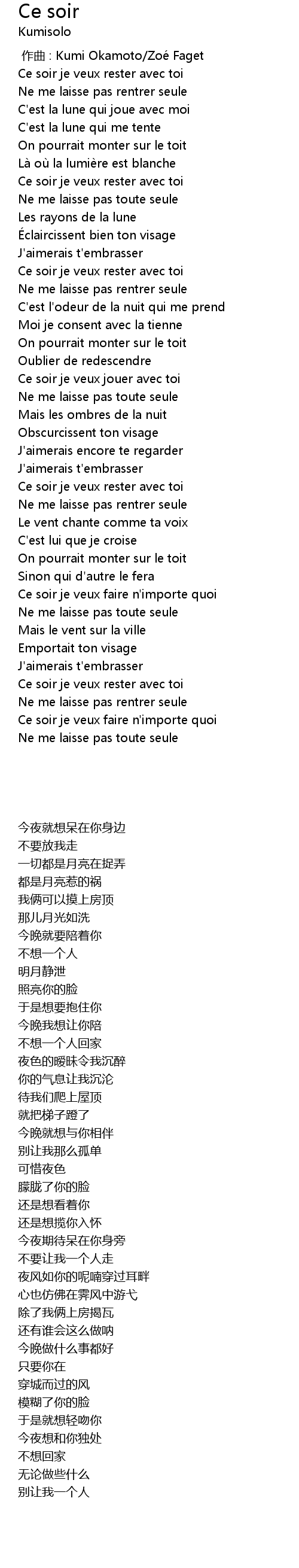 | [00:13.057] | Ce soir je veux rester avec toi |