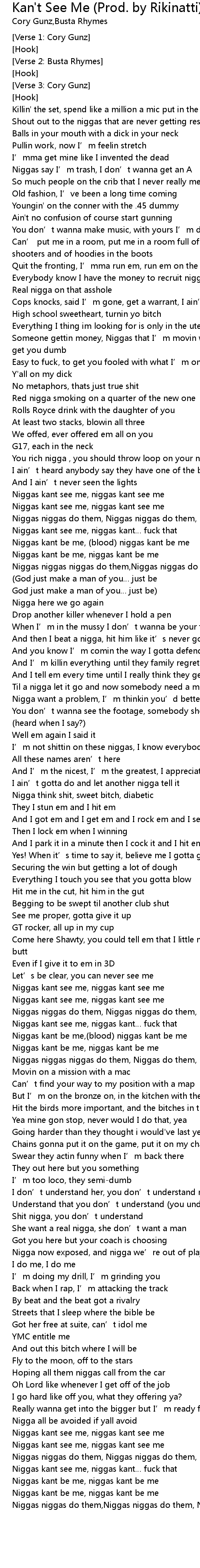 | [02:29.92] | Niggas kant see me, niggas kant… fuck that |