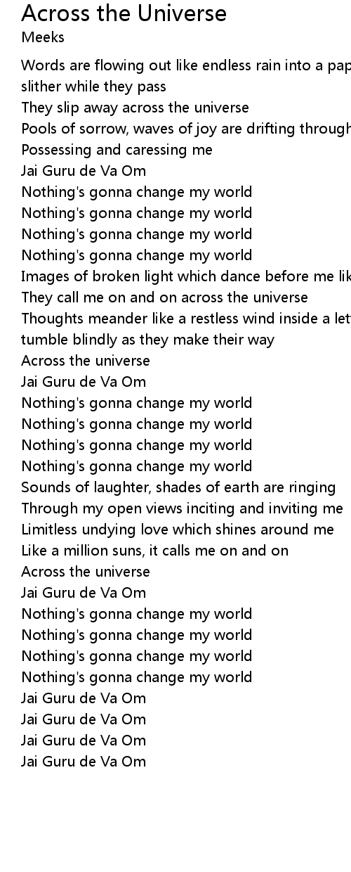 They call me on and on across the universe |