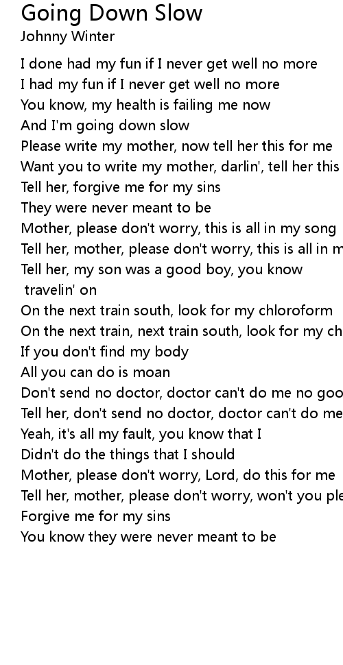 And I'm going down slow |