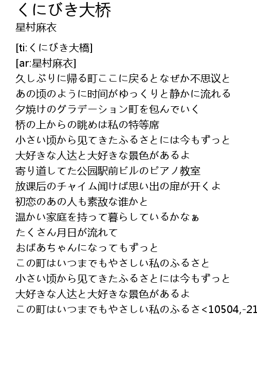| [02:25.140] | この町はいつまでもやさしい私のふるさと |