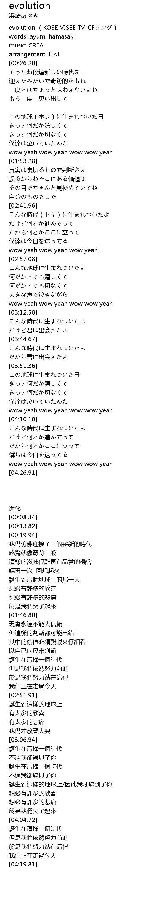 | [00:01.32] | evolution (KOSE VISEE TV-CFソング) |