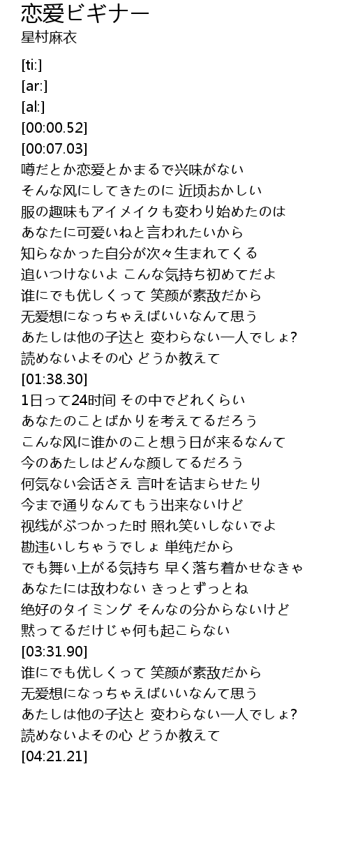 | [00:18.19] | 噂だとか恋爱とかまるで兴味がない |