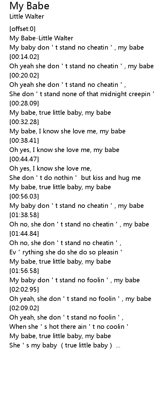 | [01:57.33] | My baby don t stand no foolin, my babe |