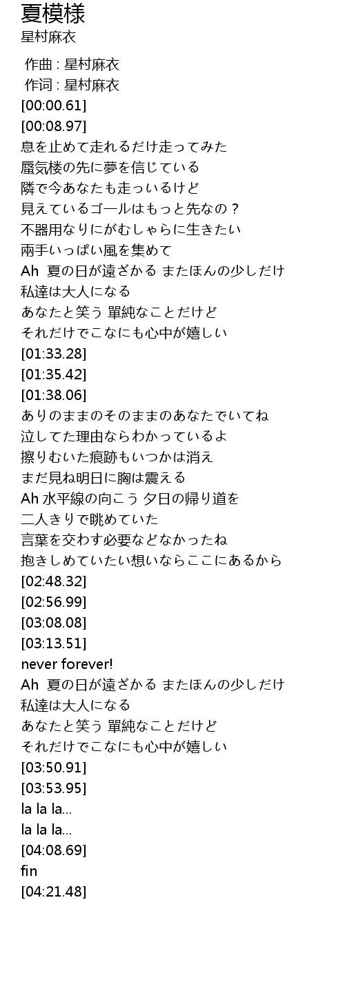 | [03:18.89] | Ah 夏の日が遠ざかる またほんの少しだけ |