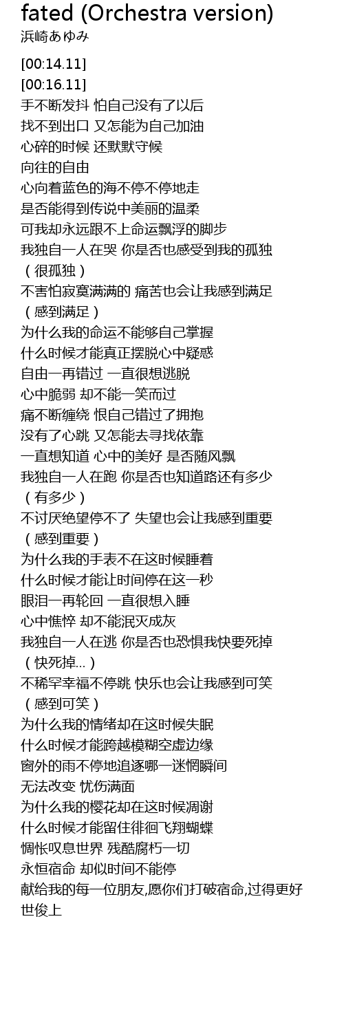 | [05:08.82] | 献给我的每一位朋友,愿你们打破宿命,过得更好 |