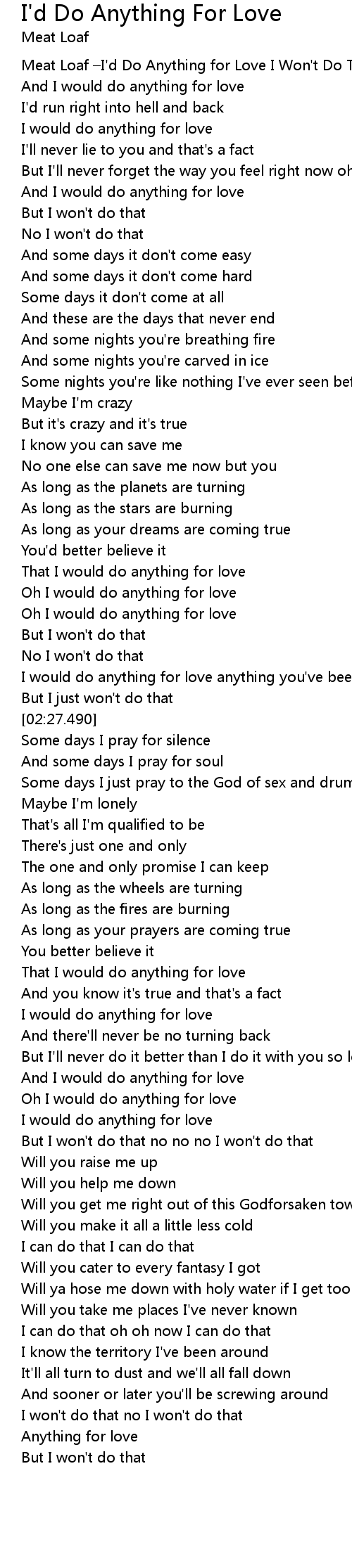 | [00:00.741] | Meat Loaf I' d Do Anything for Love I Won' t Do That |