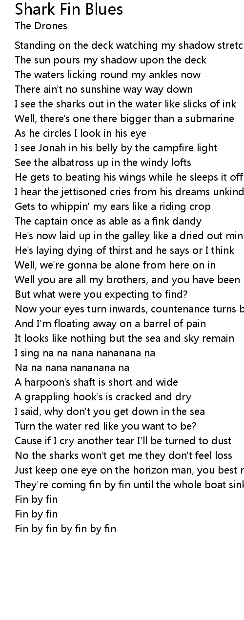 I see the sharks out in the water like slicks of ink |