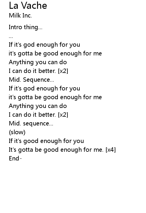 | It's gotta be good enough for me. [x4] | |