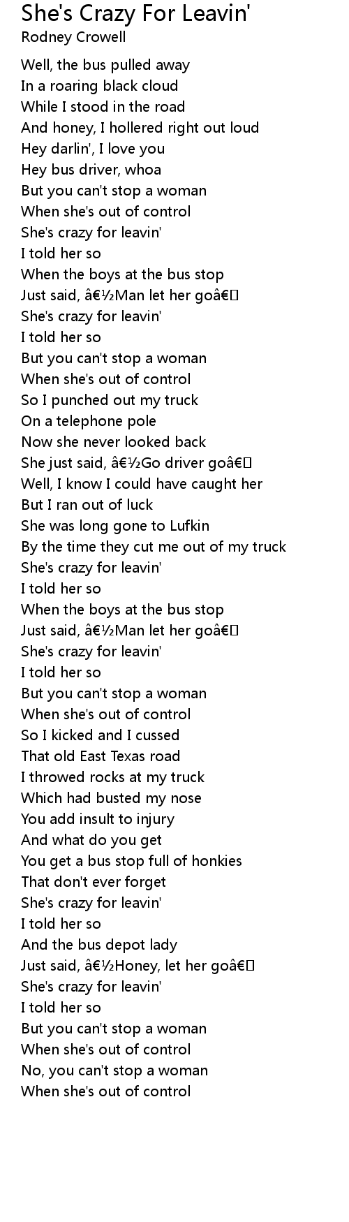 | She's crazy for leavin' | |