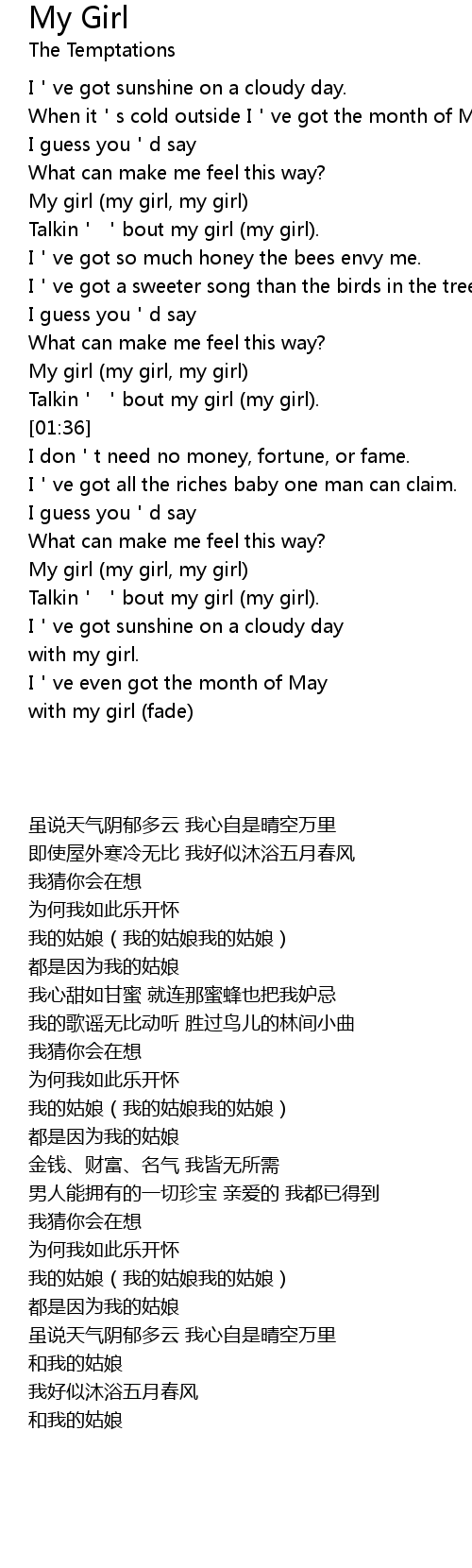 | [00:41] | Talkin' 'bout my girl (my girl). |