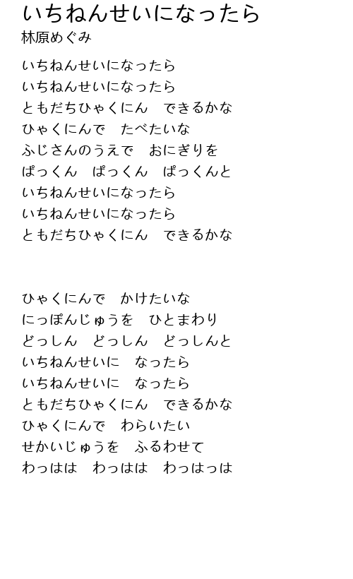 | Song | いちねんせいになったら |