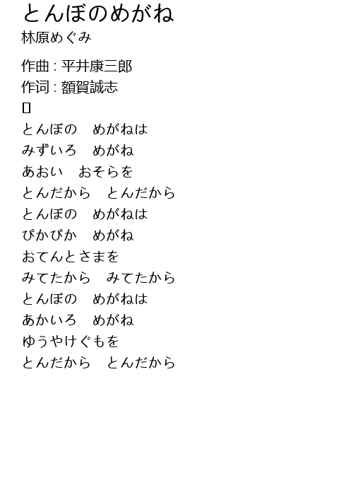| Song | とんぼのめがね |