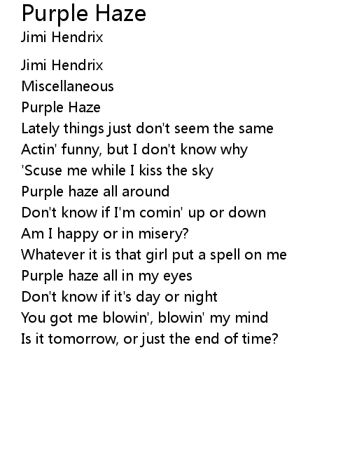 | Purple haze all in my eyes | |