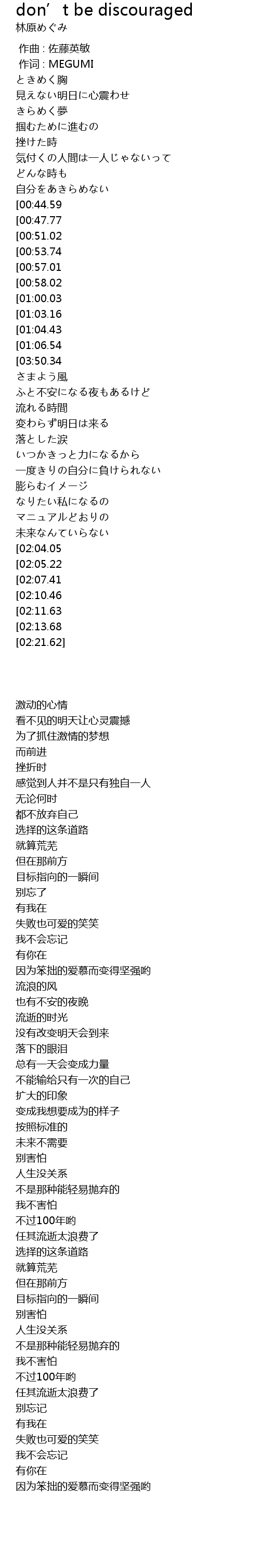 | [03:36.00][01:00.03] | 失敗も愛嬌と笑って |