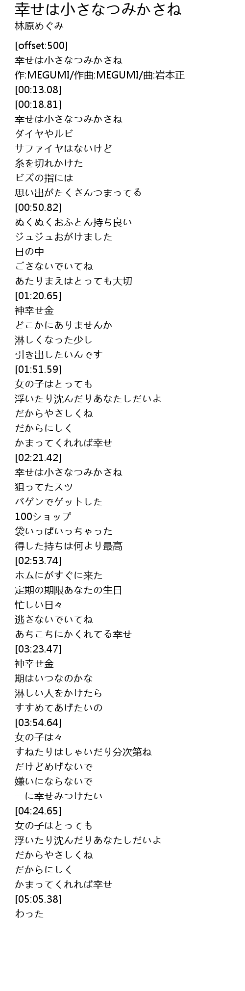 | [00:03.04] | 幸せは小さなつみかさね |